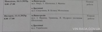 Виноградівська міська рада повідомляє: 10 листопада 2025 р. (зранку понеділка) по вул.Миру в м.Виноградів заплановане проведення санітарної та омолоджувальної обрізки дерев.