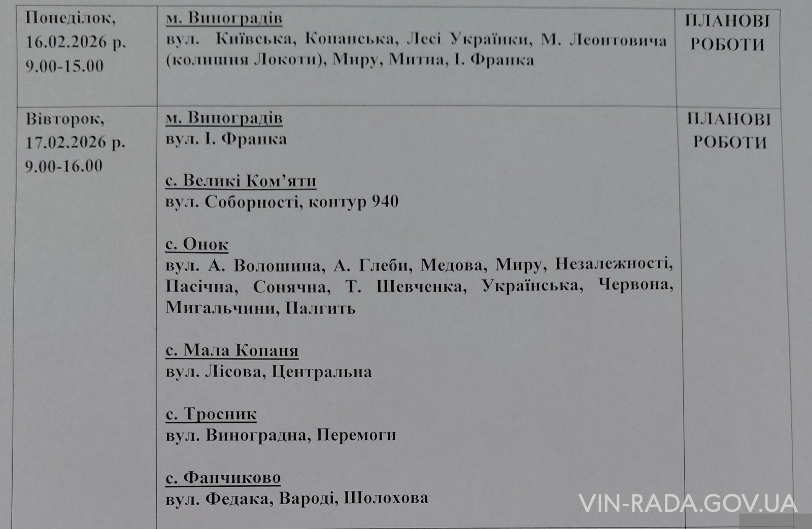 Шановні мешканці Виноградівської міської територіальної громади!