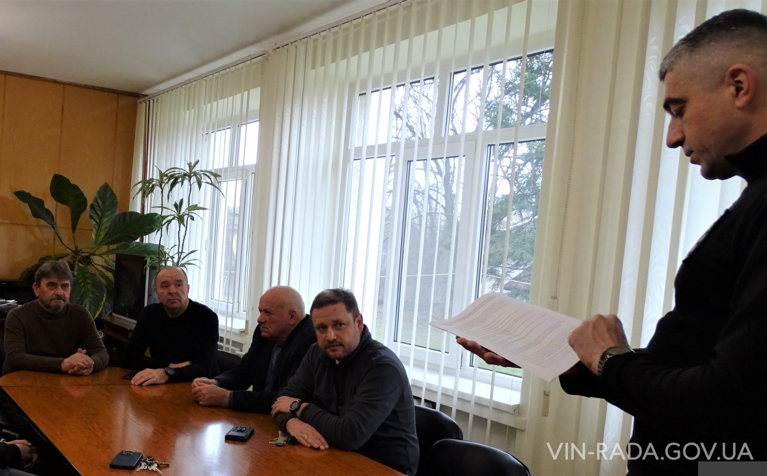 Сьогодні, 24 грудня 2025 року, у міській раді було заслухано звіт поліцейського офіцера громади, капітана поліції Роберта Козмовича за участі міського голови Степана Бочкая, заступників міського голови Адальберта Сверенка, Сергія Грабара та представників юридичного відділу міської ради.