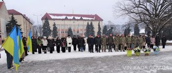 З цієї нагоди керівництво та представники структурних підрозділів міської ради, установ, організацій, силових структур, військові, учнівська молодь та громадськість долучились до загальнонаціональної хвилини мовчання, вшанували пам’ять загиблих від збройної агресії рф та поклали кошики з квітами до стели полеглим Героям в російсько-українській війні на центральній площі міста Виноградів.